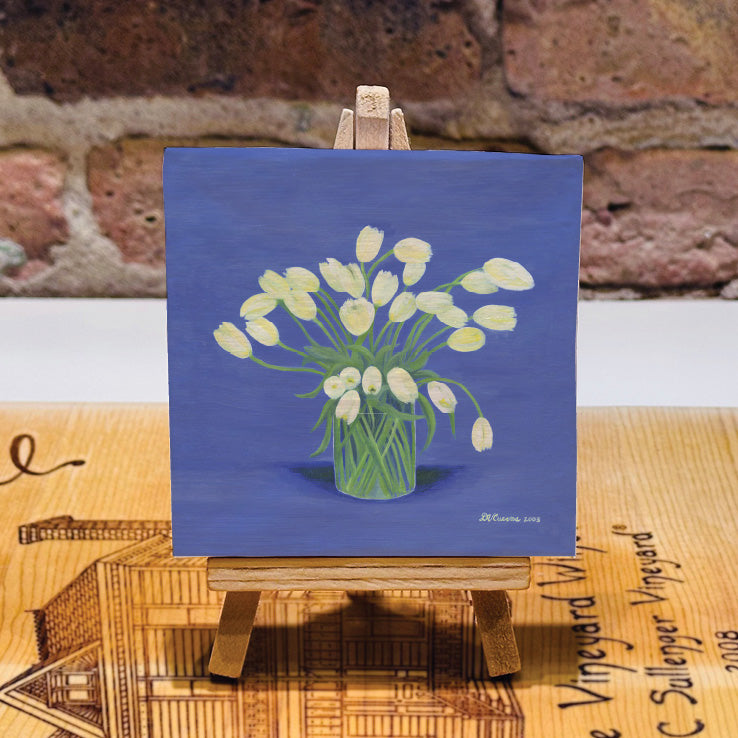 Each Mini Artwork is derived from original oil paintings by artist, Danilo Cuevas. The miniaturized art arrive mounted on canvas and accompanied by a wood easel for easy display.
