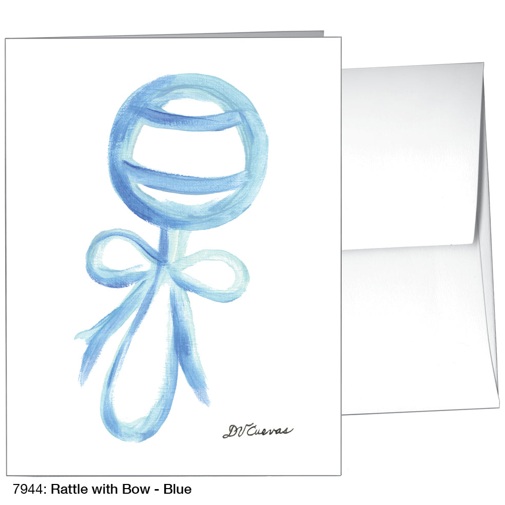 Rattle with Bow - Blue, Greeting Card (7944A)