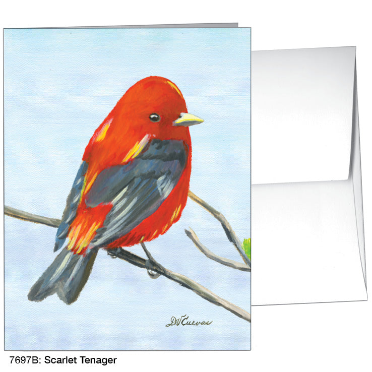 Scarlet Tenager, Greeting Card (7697B) are handmade in the USA and derived from oil paintings by artist, Danilo Cuevas.